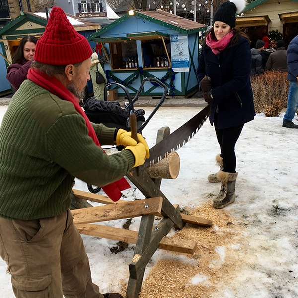 L’activité phare de ce marché, c’est de scier son propre centre de table en sciant une rondelle de bois au godendard. Il y aura aussi des ateliers pour créer des ornements de noël, des chansons, du maquillage et des films pour les enfants et des légendes hivernales québécoises…