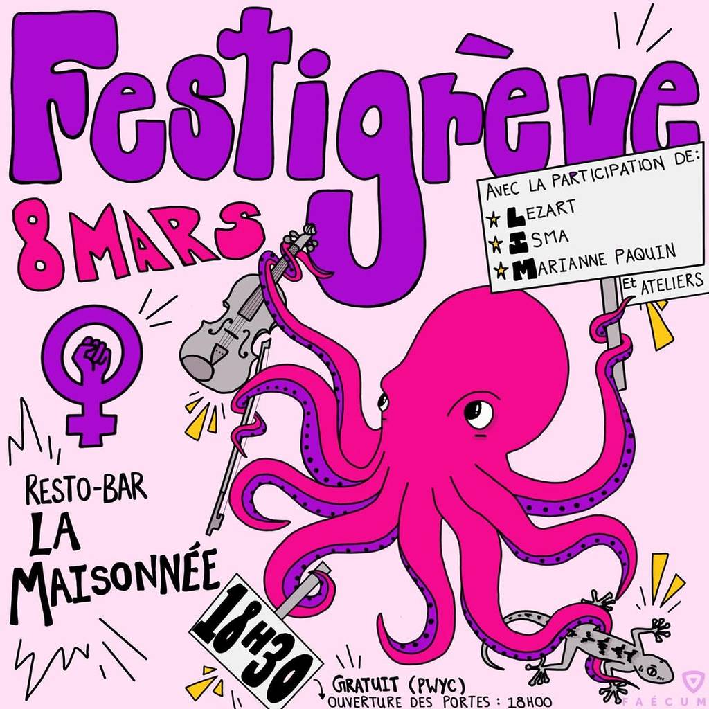À l’occasion de la journée internationale des droits des femmes, la FAÉCUM et Festigrève font un premier spectacle de la tournée de mobilisations sur la thématique de la salarisation des stages.