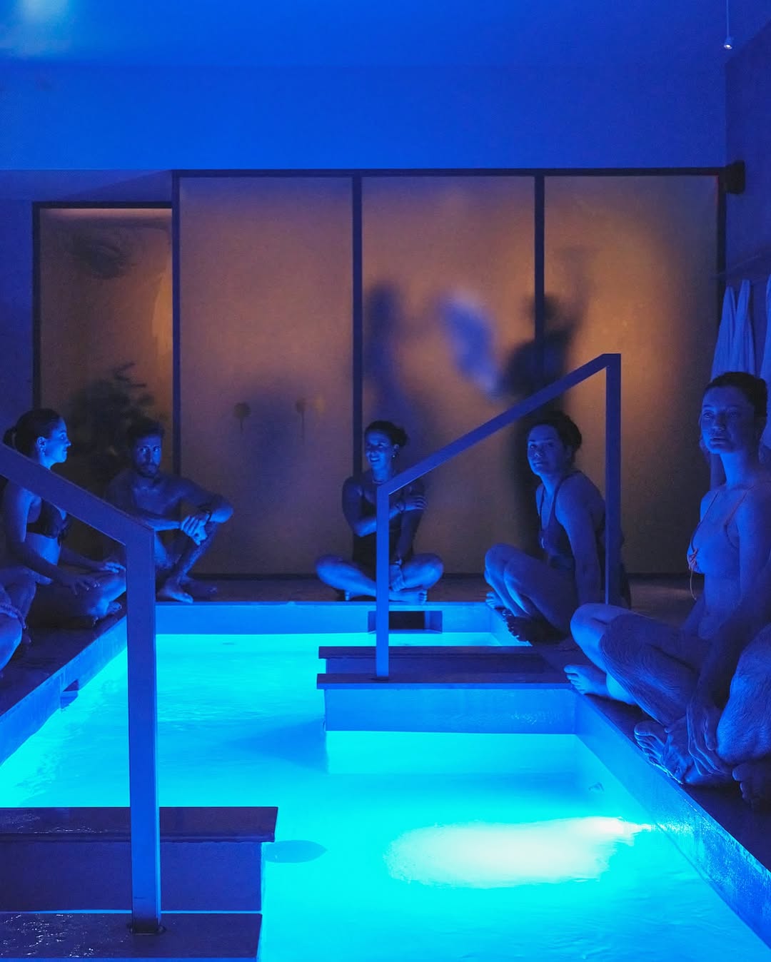 With simple lines, soft lighting and a vibe reminiscent of a 70s experimental film, the relaxation brought about by the hot-cold social bath calls for meditation.