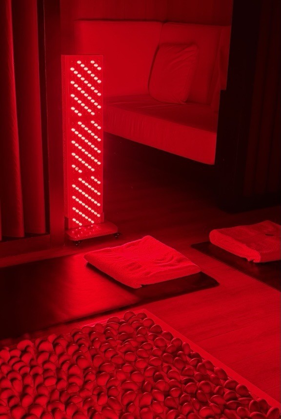 We lie down on yoga mats, and the Kala red light lamps are turned on. The Canadian brand that produces them supplies Team Canada’s Olympic athletes for their post-exercise recovery. They are medical grade, promote cell regeneration, and the light pulses behind my closed eyelids like a second sun.