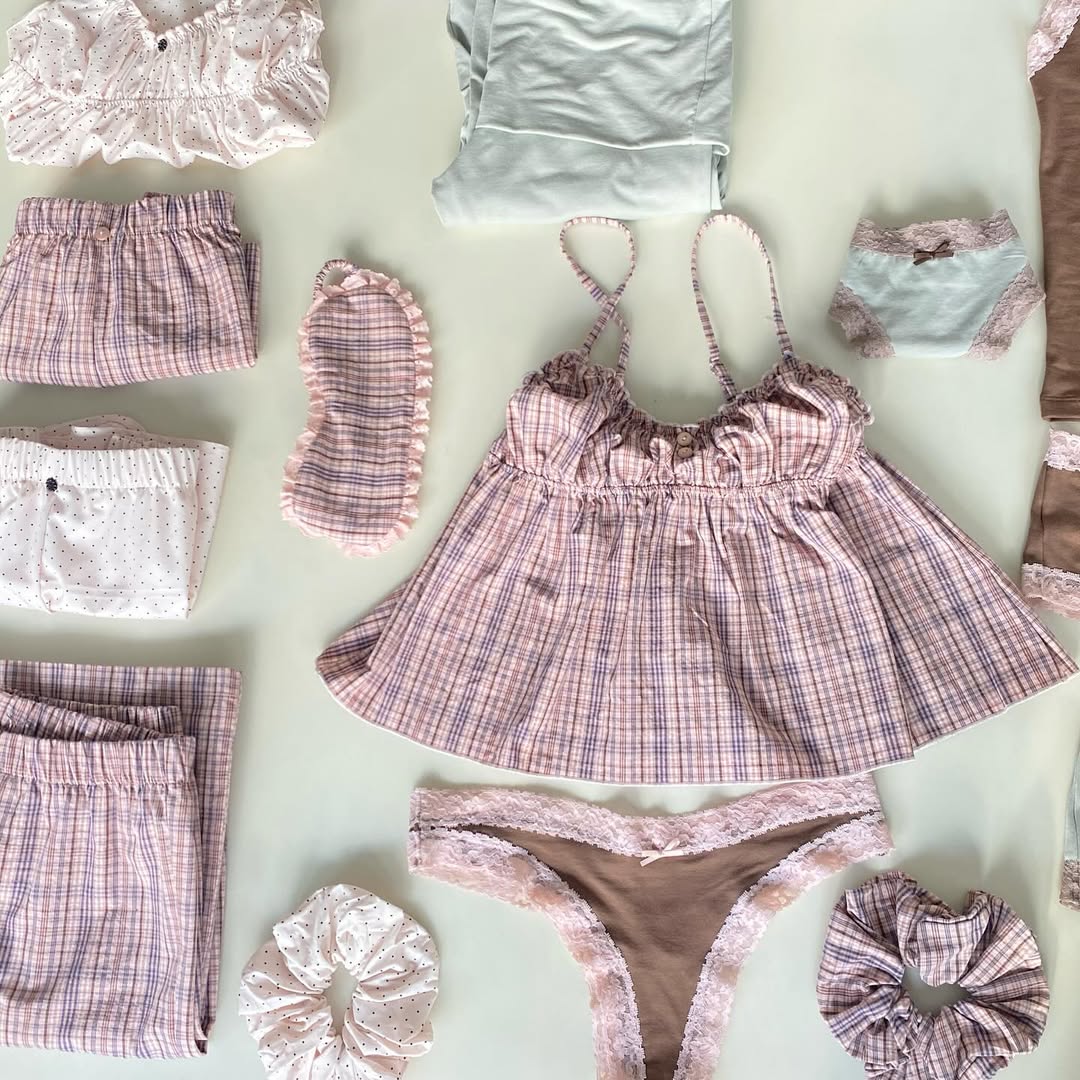 Pajama sets start at $154, shorts are $78, and panties and eye mask start at $24.