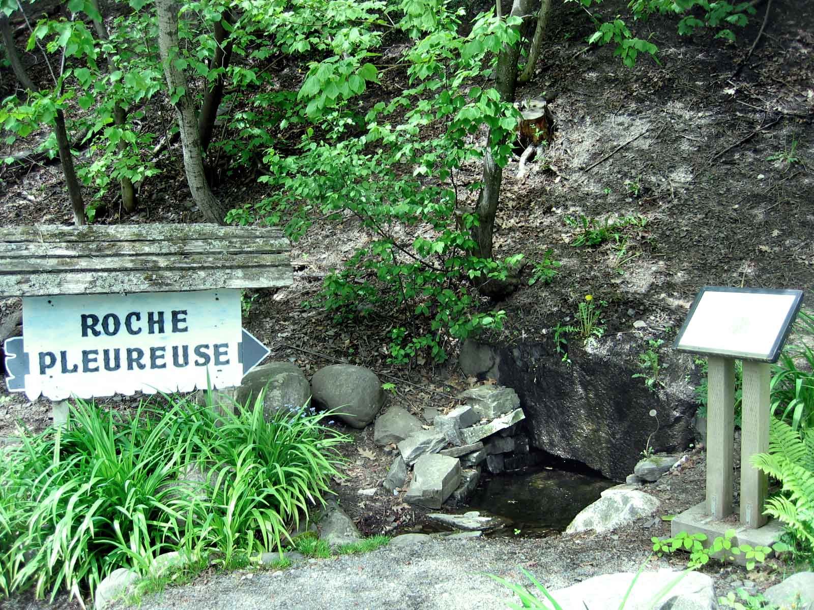 Near one of the rocky shores of Isle-aux-Coudres, there’ s a large rock that “cries”. Water flows from it constantly, all year round, and in addition to the geological oddity (which was quickly debunked when we found a small hole from which the water flows) of this viewpoint, there’s a local legend that explains the inexplicable…