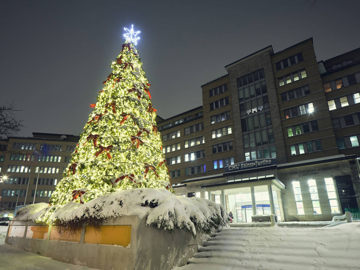 The Grand Sapin is a fundraising event in support of mother-and-child care at CHU Sainte-Justine, and is represented by the illumination of Christmas lights on the hospital’s tree.