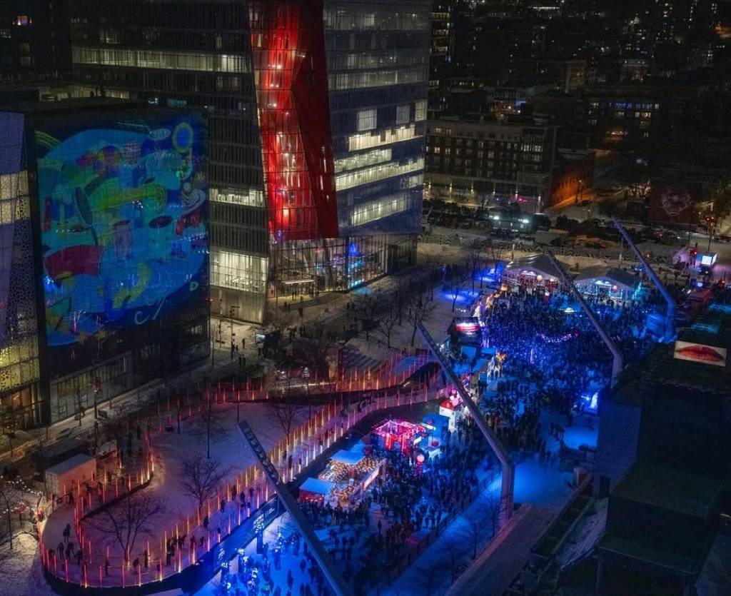 Where? In the Quartier des Spectacles, between René-Lévesque, Sherbrooke, and Saint-Hubert (Place des Arts metro station)