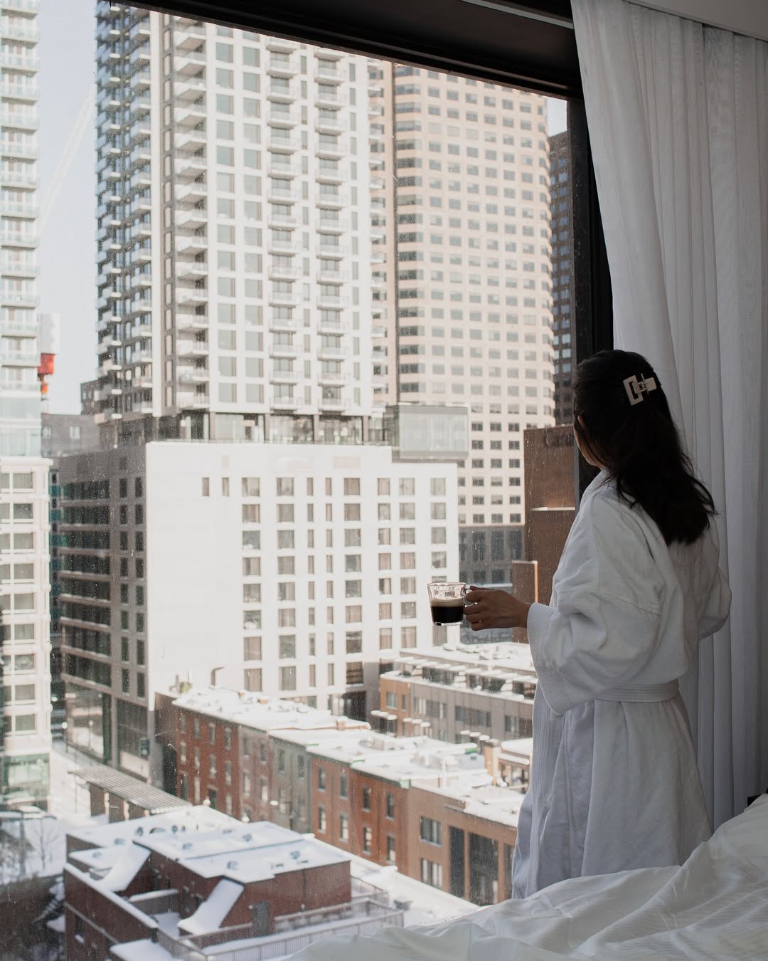 The Four Seasons in Montreal is centrally located, incredibly chic, and discreet—making it feel like your night at the hotel is timeless and far removed from your everyday life. In addition to a drink at Marcus’ bar and a visit to the Guerlain spa, you can sleep in until 10 a.m. the next day and wake up to a rare and very romantic view of Montreal.