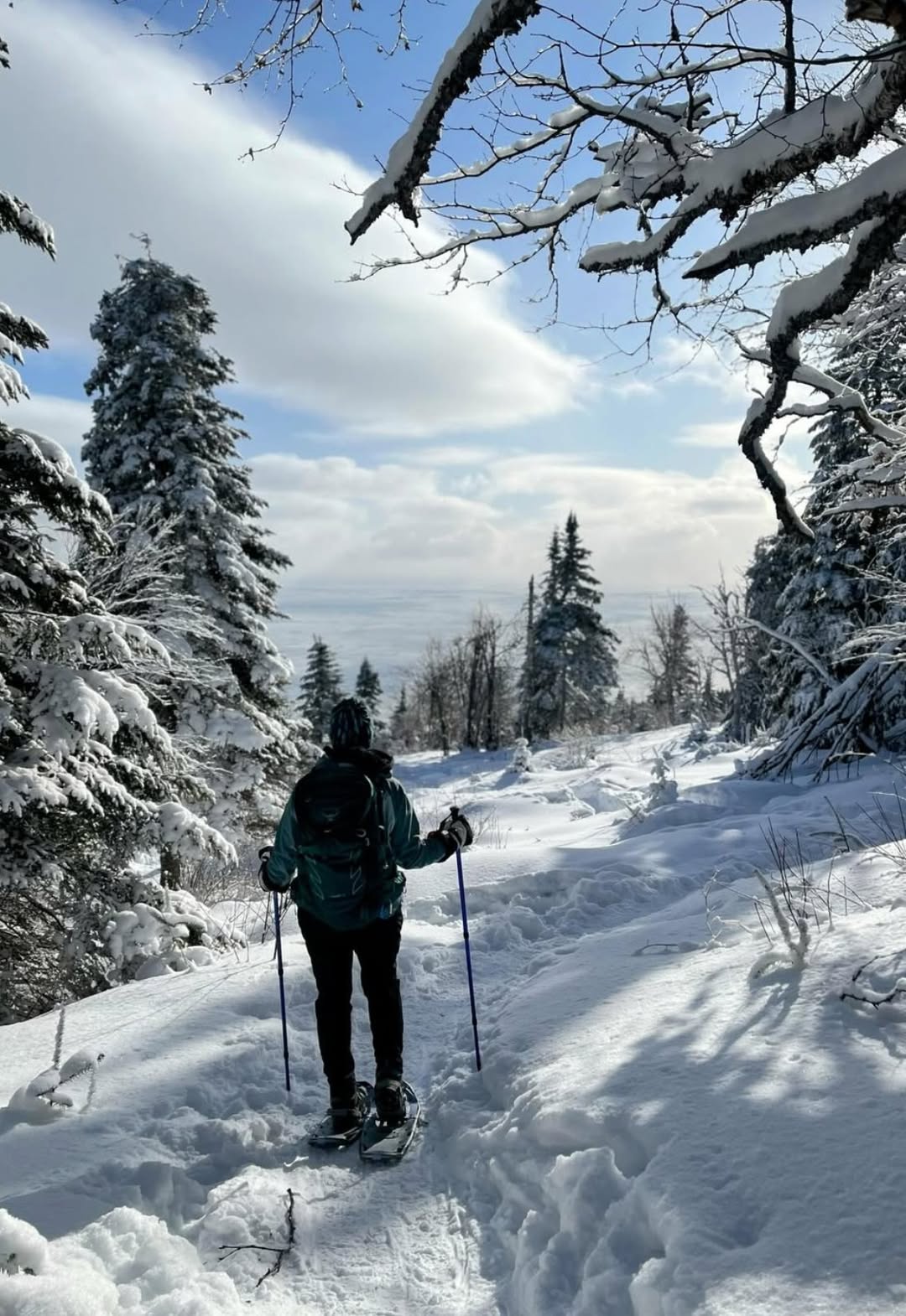 Between Cap Tourmente and Petite Rivière Saint-François, on the heights, you can stroll among the snow-laden trees. You can go cross-country skiing, snowshoeing, or hiking.