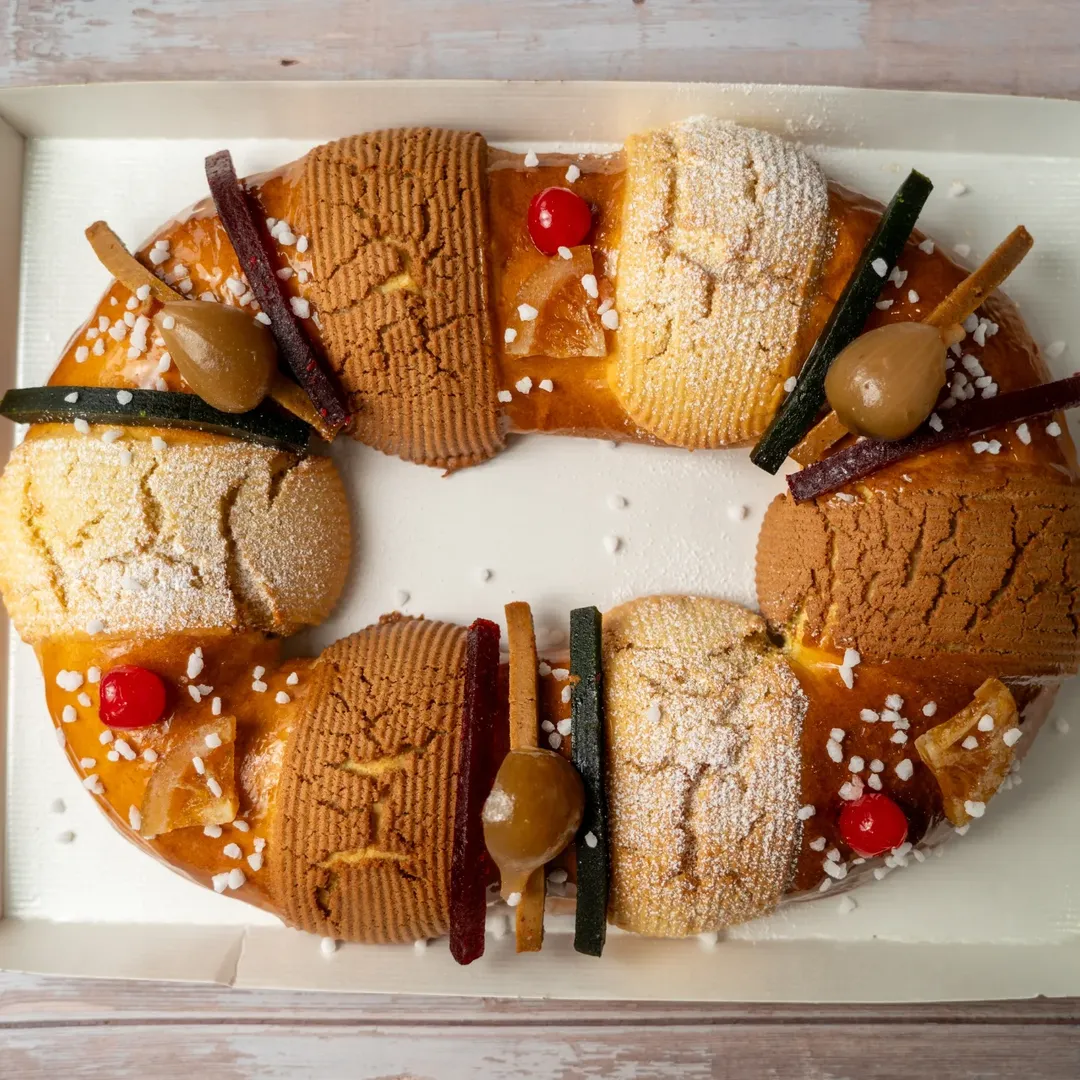 In the Mexican tradition, Carlota’s bakery offers a Rosca de Reyes (Crown of Kings). It’s a brioche without frangipane, flavored with orange and decorated with candied fruit.