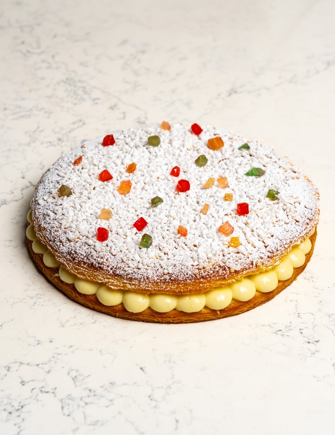 There’s the classic frangipane galette and the brioche des rois, with cream and decorated with powdered sugar and candied fruit.