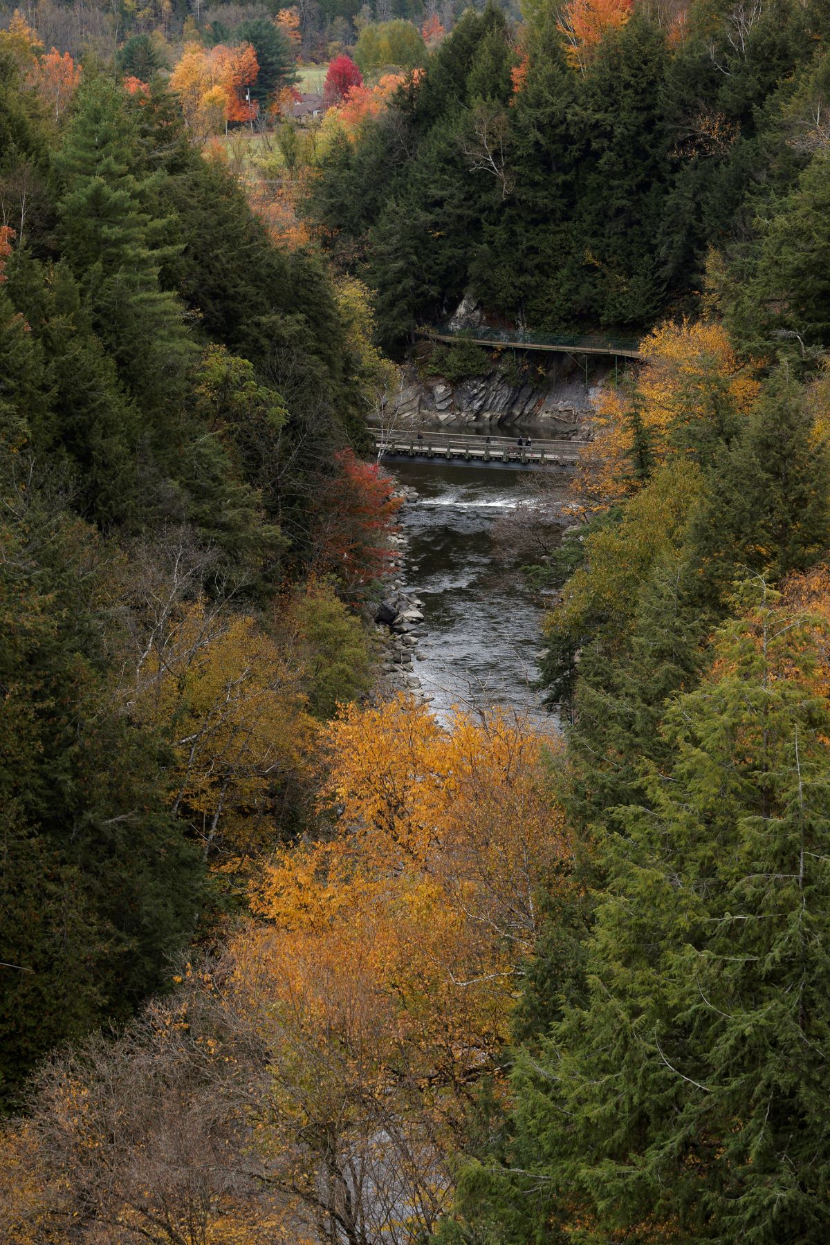 La fameuse passerelle du Parc de la Gorge de Coaticook est souvent sous les projecteurs, mais en automne, elle revêt un charme tout particulier.