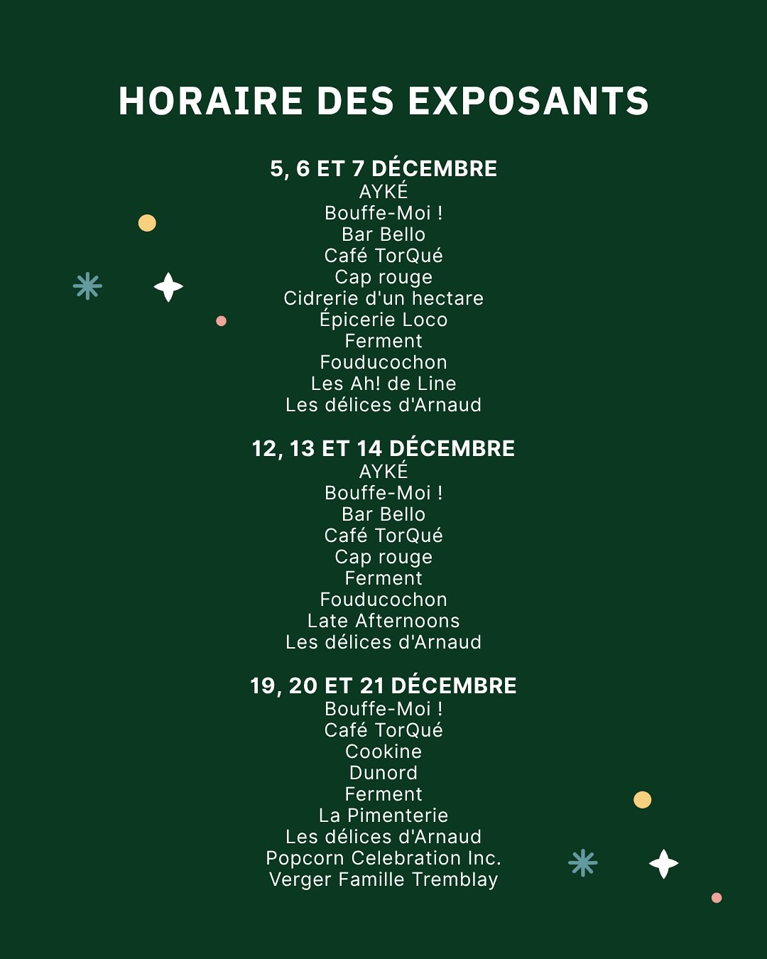 Quand? les weekends de décembre