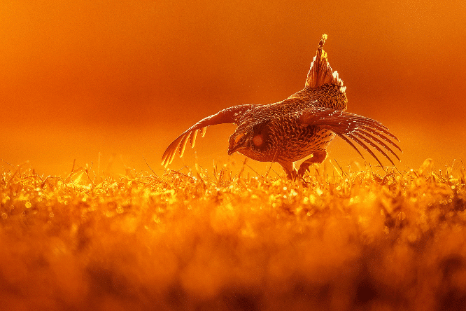 Le fait de les trouver et de les photographier [bœuf musqué, caribou et gélinotte à queue fine] est une preuve de savoir-faire et de détermination, mais le travail de M. Bégin fait également preuve de talent artistique et d’une compassion évidente pour ses sujets sauvages, ce qui lui vaut le titre de photographe canadien de l’année.