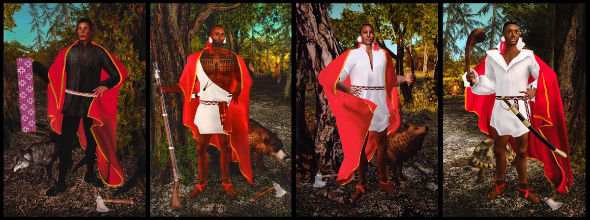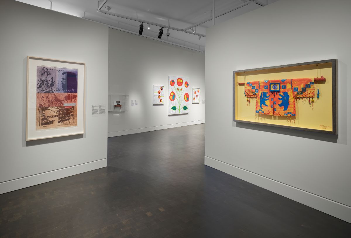 Les artistes dont on peut voir les oeuvres de la première exposition du nouveau cycle d’expositions temporaires du 4ème étage sont autochtones et issus des confédérations rotinonhsión:ni, wendat, w8banakiak et des alliances anishinaabeg des fleuves et des grands lacs, en activité des années 1970 à aujourd’hui.